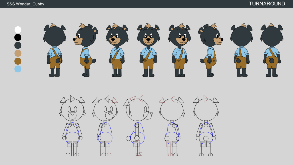 // character design of a main characters for upcoming animated series running by Super Science Showcase
